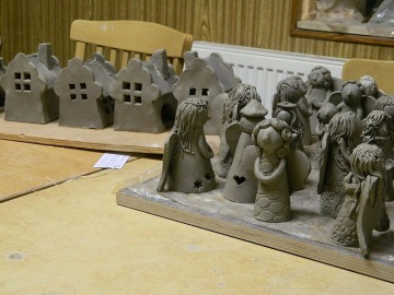 Ve středu 20.11.2019 jsme v Nazaretu uspořádali dobrovolnický den. Ve společenské místnosti se sešlo 10 dobrovolníků z ČSOB a 5 z České podnikatelské pojišťovny a jejich hlavní misí bylo posílit předvánoční výrobu. Výsledkem je 57 vymodelovaných keramických andílků a 11 domečků na svíčky! Po finálním zaretušování, vypálení, naglazování a opětovném vypálení si i tyto výrobky budete moct koupit na našich Vánočních trzích.