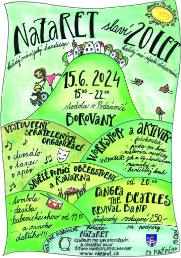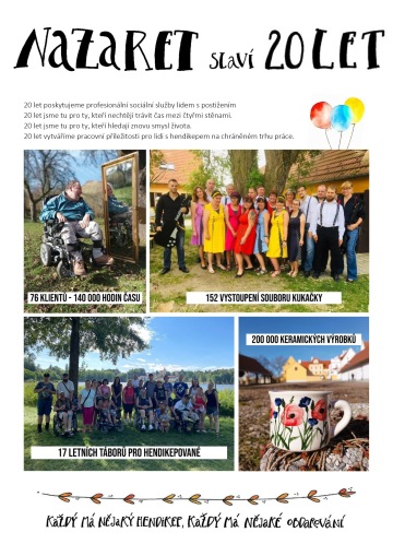 Program bude velmi pestrý - ukázky tvorby nazaretské keramiky - s možností namalovat si něco na památku, komentované prohlídky chráněných dílen, kde ty naše dílka vznikají, bude malování na obličej, jízdy na koni, možnost vyzkoušet si na chvíli, jak se žije s hendikepem, bude tombola, dražba, bubenická show, budete se moci vyfotit ve fotokoutku, plus se v průběhu celého odpoledne budou odehrávat vystoupení spřátelených organizací, atd.... A skvělé občerstvení - samozřejmě bude...
