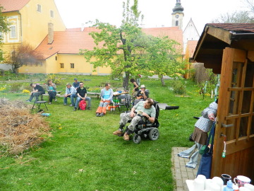 V pátek 26.4.2019 jsme se sešli v klášterní zahradě na společné akci se spřátelenou organizací "chráněné bydlení Naplno z Lišova". Společně jsme postavili májku, rozdělali oheň, na kterém jsme opekli buřty, sýry, zeleninu, popovídali si a zahráli kuželky. Za tento příjemně strávený čas všem zúčastněným děkujeme a těšíme se na další setkávání.
